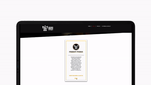 Freddy Fuego makes authentic regional salsas on-site every day, and the meat is marinated for hours in a secret blend of real whole dried chillies, then cooked or roasted slowly to become extra tender and tasty.NEXTPREVIOUSSEE MORE PROJECTSABOUTWORKARTWORKCONTACT