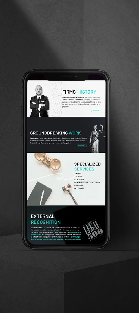Boutique law firm with over 30 years of experience; highly specialized, multidisciplinary, whose main areas of practice are litigation and insurance.DESIGNSánchez - Saldaña, AbogadosWEBCORPORATE LAW INSURANCES SPECIALIZED LITIGATION OVERVIEWEffortlessly elevate your look with our collection of classic watches that seamlessly transition from casual to formalBRAND IDENTITYThe Firm was founded with the purpose of efficiently combining different legal practices and forming with their clientsDESIGNADSSOCIAL MEDIADIGITAL CONTENTBRAND STORYCONTENT GUIDELINESSOCIAL MEDIAEffortlessly elevate your look with our collection of classic watches that seamlessly transition from casual to formalIDENTITYReliable and Precise Movement PartsBRANDVersatile style suitable for both casual and formal occasionsPremium Quality Materials and CraftsmanshipBRAND MARKBRAND IDENTITYarrow_forwardNEXT PROJECT/{{current_slide_index}} of {{total_slide_count}}prevnextABOUTWORKARTWORKCONTACT